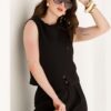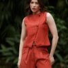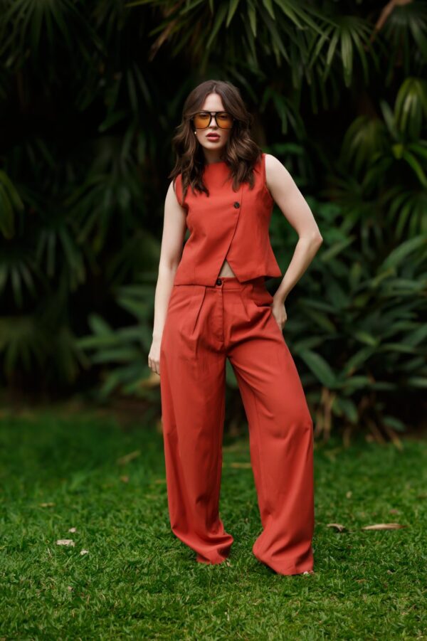 Colete confeccionado em viscose, com gola redonda e cava. Fecho frontal cruzado com botões. Uma peça que traz um toque moderno e elegante.